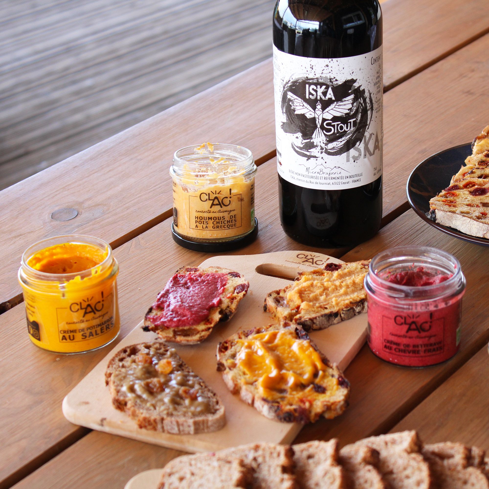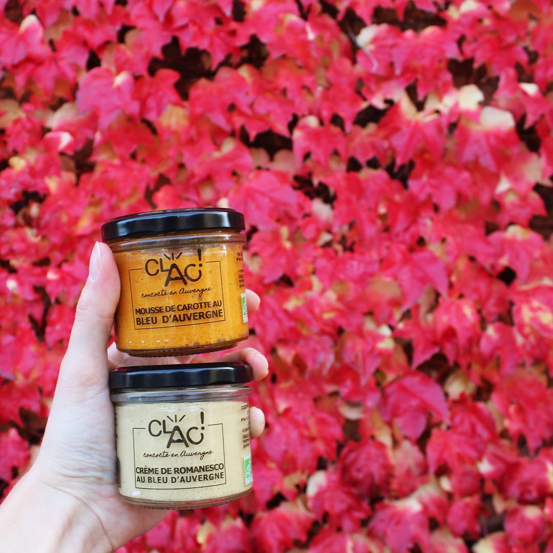 La toute première recette à voir le jour en 2017 est la mousse de carottes au bleu d’Auvergne, un véritable succès primé au salon international des produits biologiques, Natexpo. Aujourd’hui, l’entreprise s’est agrandie et la gamme s’est diversifiée avec un choix de plus d’une quarantaine de références 100% bio, originales et locales. Clac propose des tartinables apéritifs avec ou sans fromage (comme la crème de betterave au chèvre frais, le caviar d’aubergines à la libanaise…), des sauces (sauce barbecue, sauce champignon à la crème…), des légumes cuisinés (courgettes au basilic, fenouil confit à la tomate…) et des soupes (velouté courge, coco, gingembre, gaspacho auvergnat…).